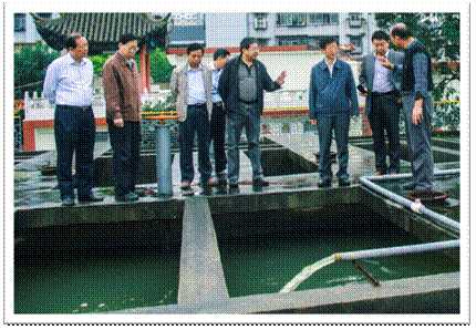 9月28日上午,襄陽(yáng)市委常委、副市長(zhǎng)朱慧帶領(lǐng)市城建委等相關(guān)部門(mén)10余名負(fù)責(zé)人,來(lái)到襄陽(yáng)中環(huán)水務(wù)有限公司米公水廠(chǎng)進(jìn)行“國(guó)慶”節(jié)前供水安全檢查督導(dǎo)。襄陽(yáng)中環(huán)水務(wù)負(fù)責(zé)人陪同市領(lǐng)導(dǎo)先后對(duì)該廠(chǎng)送水泵房、加氯間、濾池等進(jìn)行認(rèn)真查看。市領(lǐng)導(dǎo)就襄陽(yáng)中環(huán)水務(wù)通過(guò)“強(qiáng)化廠(chǎng)區(qū)安防措施、提升供水保障級(jí)別,加強(qiáng)全天候供水處置預(yù)案、確保節(jié)日期間安全供水工作扎實(shí)有效的部署”給予了高度的評(píng)價(jià)和肯定。圖為襄陽(yáng)中環(huán)水務(wù)總經(jīng)理劉西華(右四)、公司黨委書(shū)記甄先強(qiáng)(左一),陪同并向市委常委、副市長(zhǎng)朱慧(右三)等領(lǐng)導(dǎo),在制水濾池進(jìn)行工作匯報(bào)。