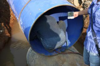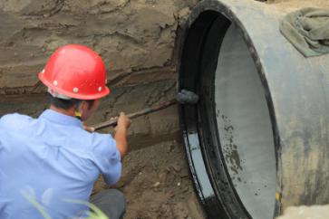 一截管道安裝完畢,王俊鉆進了管道中,沿著新鋪設(shè)的這截6米長的管道,一邊爬一邊觀察,檢查管道接口處的皮圈是否有縫隙,有沒有受擠壓而外露。見皮圈處平整無縫,王俊才放心地爬了出來。盡管當(dāng)天氣溫不高,但管道中密不透風(fēng),讓人喘不過氣,一趟爬下來,王俊的腦門上布了一層細細的汗珠。