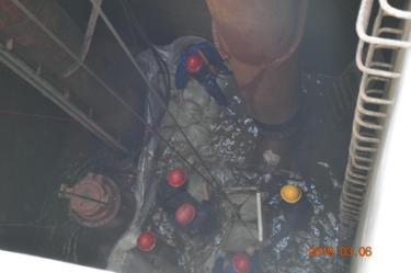 水廠機修人員下到12米沉水井內的漏水點,詳細檢查后發(fā)現(xiàn)2號取水泵底座共6個固定螺絲,2個已斷裂,3個已松動,導致2號取水泵運行時底座不穩(wěn),嚴重影響供水安全,機修人員立即向公司領導匯報,制定了維修方案。