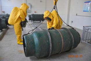 在總指揮趙建同志的哨響聲下,應(yīng)急救援演練活動正式開始。氯氣泄漏事故模擬現(xiàn)場煙霧彌漫,漏氯泄漏報(bào)警儀發(fā)出尖銳的報(bào)警信號,現(xiàn)場指揮人員立即發(fā)出指令,啟動緊急處置預(yù)案。警戒疏散小組、搶修小組、消防小組各組成員第一時(shí)間趕到事故現(xiàn)場,搶修人員迅速穿好防化服進(jìn)入氯庫,將氯瓶的泄漏點(diǎn)封住,放置于堿池中,防止氯氣繼續(xù)泄漏造成更大的危險(xiǎn)。與此同時(shí),警戒疏散小組設(shè)立崗哨,拉起警戒線,負(fù)責(zé)氯瓶間工作人員安全撤離。消防小組啟用消防水管噴灑大量水,稀釋空氣中的氯氣,防止空氣中的氯氣含量超標(biāo)發(fā)生二次傷害。此次演練行動迅速,全程用時(shí)16分鐘,有效處理了氯氣泄漏,取得了預(yù)期效果。
