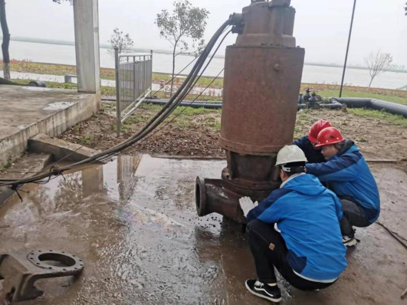 4月6日,宜城天河供水公司水廠按崗位標(biāo)準(zhǔn)化管理要求對(duì)取水車間南側(cè)沉井潛泵進(jìn)行了月度檢查維護(hù),檢查時(shí)發(fā)現(xiàn)4#潛泵在運(yùn)行時(shí)會(huì)偶爾發(fā)出‘叮咚’撞擊聲,再觀察4#取水潛泵控制柜電流、電壓、流量正常后,機(jī)修人員初步判斷4#潛泵進(jìn)水口周圍可能有異物。