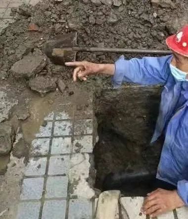 接著報單、通知維修隊開挖,“功夫不負(fù)有心人”,當(dāng)維修工作坑挖至地面一下約1米左右的地方,水流上涌,這段DN110的PE管漏點被精準(zhǔn)找到維修??粗S修人員停水、維修、恢復(fù)供水一氣呵成,用戶們一顆懸著的心也終于放下。