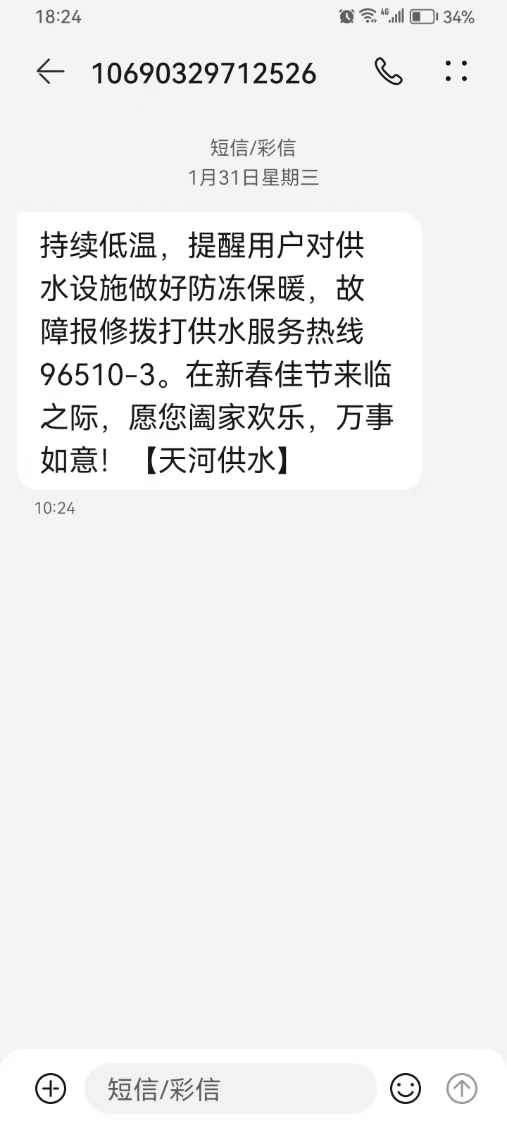 為提高市民防凍保溫意識,公司加大供水設施防凍保暖宣傳力度,在官網(wǎng)及微信公眾號發(fā)布防凍溫馨提示,給用戶發(fā)送短信累計55000余條,提醒市民做好供水設施的防寒防凍工作。同時,公司還對各小區(qū)的物業(yè)公司進行告知尋訪,持續(xù)巡查重點區(qū)域,在發(fā)現(xiàn)凍損情況時立即采取措施疏通,組織維修更換。