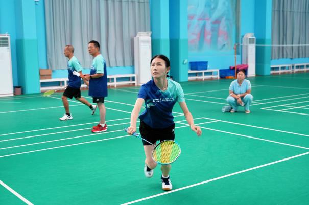 羽毛球場上,健兒們身手矯健、揮汗如雨,展現(xiàn)了高超的技藝和頑強(qiáng)的拼搏精神。